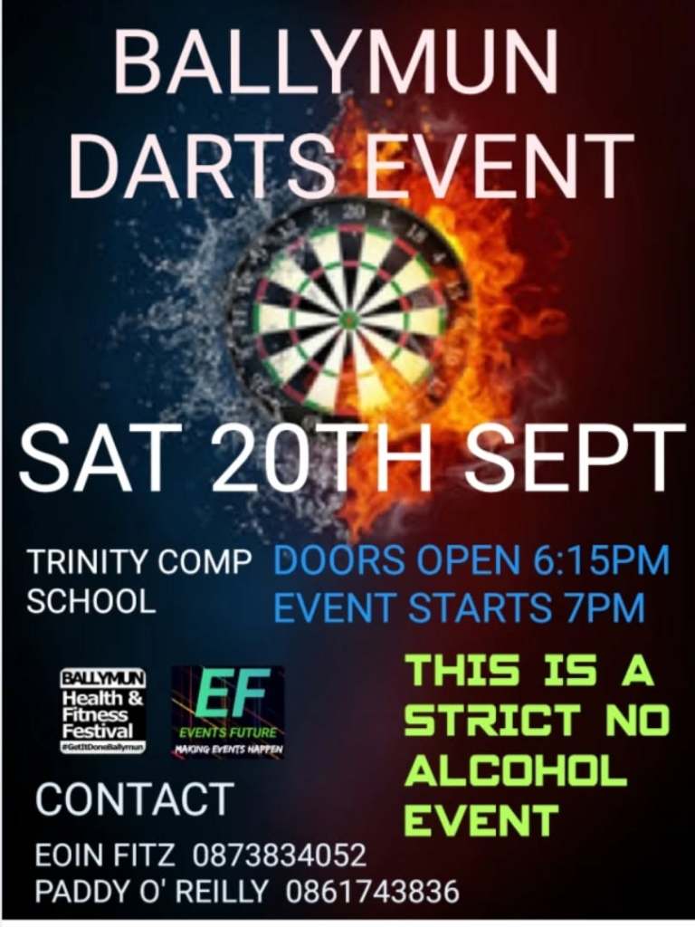 Come and support the first Ballymun Darts competition- ever! It’s on Saturday September 20 (7pm) in Trinity Comp as part of the Ballymun Health and Fitness Festival and visitors are welcome to come along and cheer on their favourite player. Info Eoin Fitz 0873834050