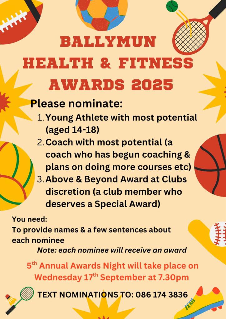 BALLYMUN HEALTH & FITNESS AWARDS Posted bylindienaughtonSeptember 5, 2025Posted inUncategorized Get your nominations in now! Share this: Share on X (Opens in new window) X Share on Facebook (Opens in new window) Facebook Like Loading... Related